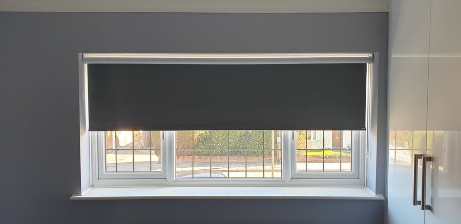 Made to measure blackout fabric roller blind measured, supplied and fitted in Beckenham.