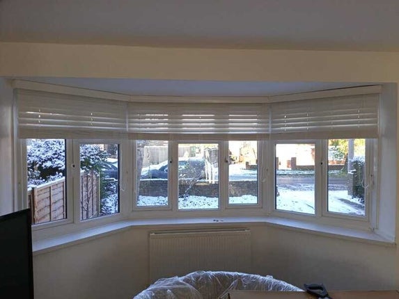 We have just installed white faux wood venetian blinds to a bay window, stairs & landing window.