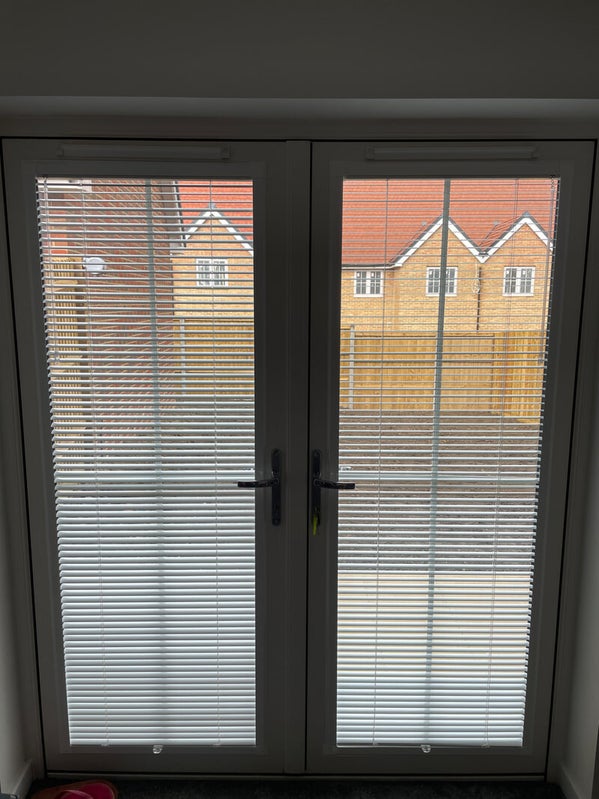 Made to measure white perfect fit venetian blinds fitted to doors in Hoo.