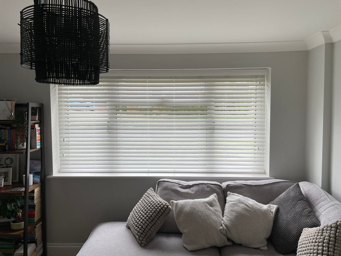 Made to measure white faux wood venetian blinds measured and fitted in Swanley, Kent.