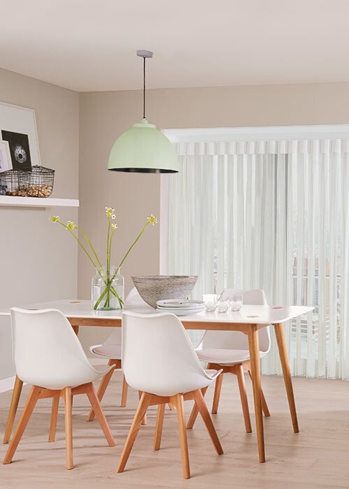 Made to measure white Allusion blind fitted in a dining room door area in Orpington. Great for privacy and light control and a fantastic alternative to Vertical blinds.
